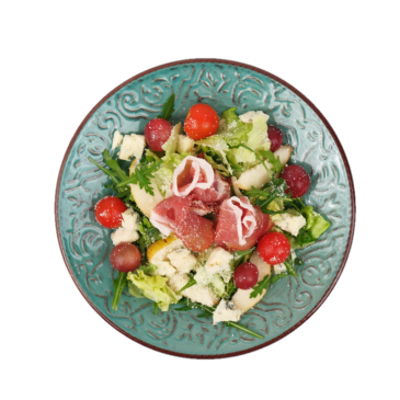 Salata cu prosciutto crudo, gorgonzola, pere, rosii cherry si boabe de struguri 350g