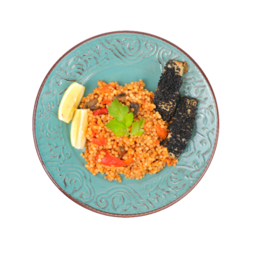 File de cod in crusta de susan negru cu tocanita de linte si cous-cous 250g